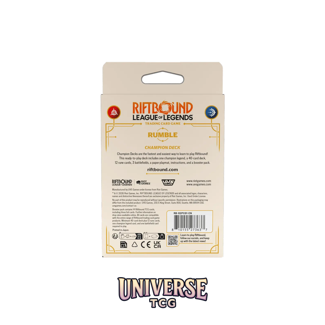 • 1 mazo preconstruido de 56 cartas – Rumble (Champion Deck), listo para jugar